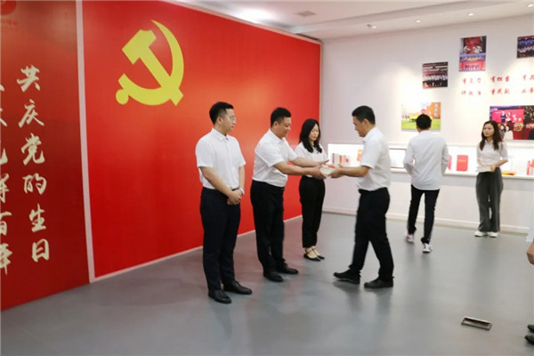 為上半年新發(fā)展黨員發(fā)放黨徽、黨章及黨史學(xué)習(xí)書籍“學(xué)習(xí)包”