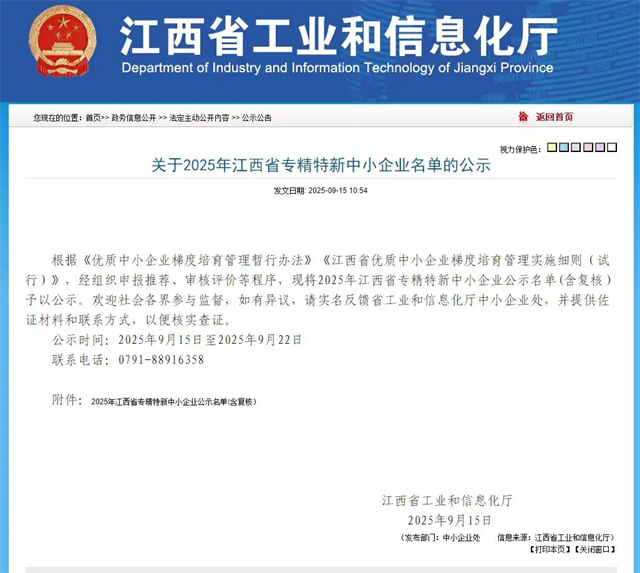 喜報!龍盛汽車公司、合盛安泰新材料公司雙企同獲“2025年江西省專精特新中小企業(yè)”稱號